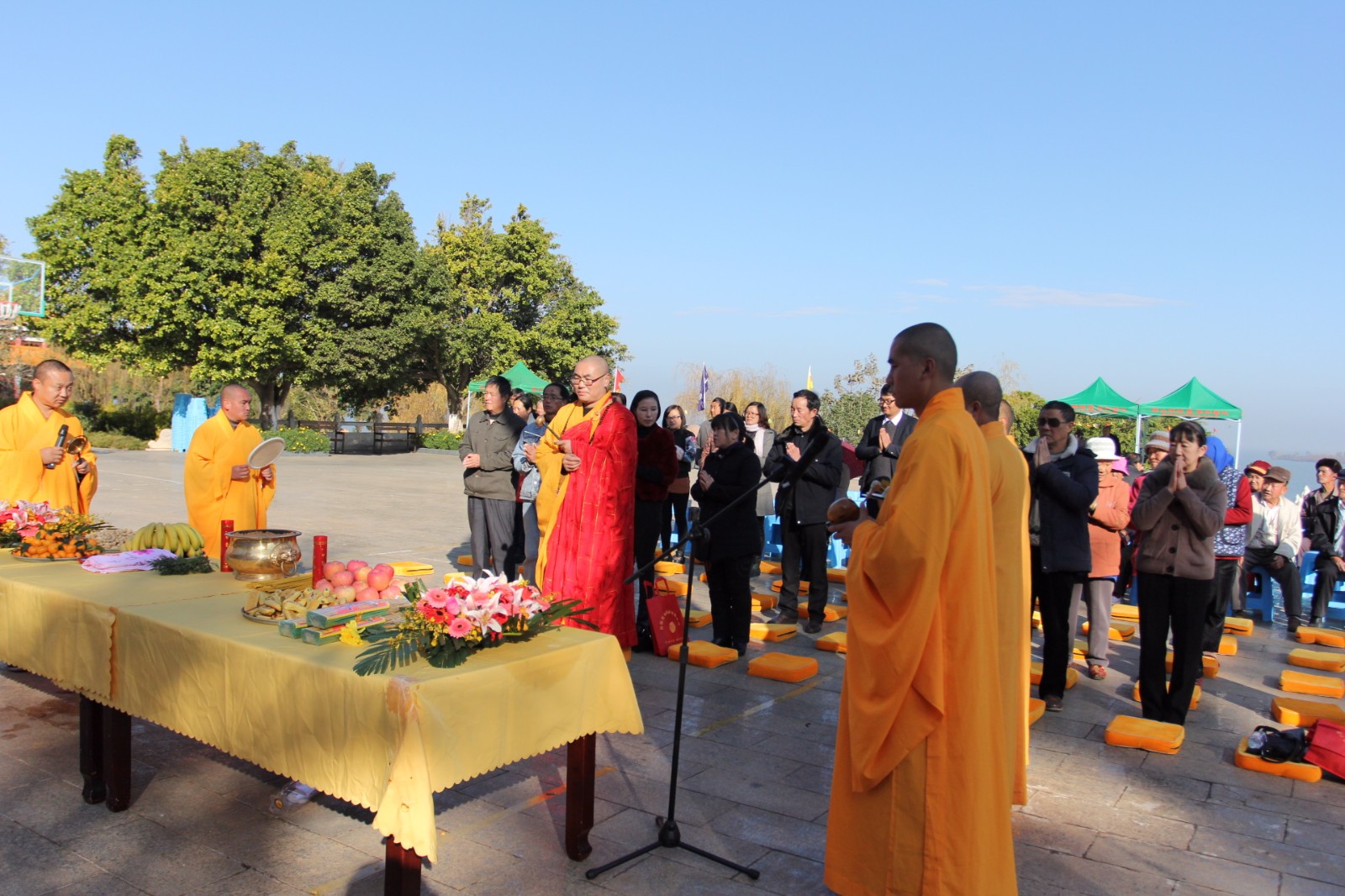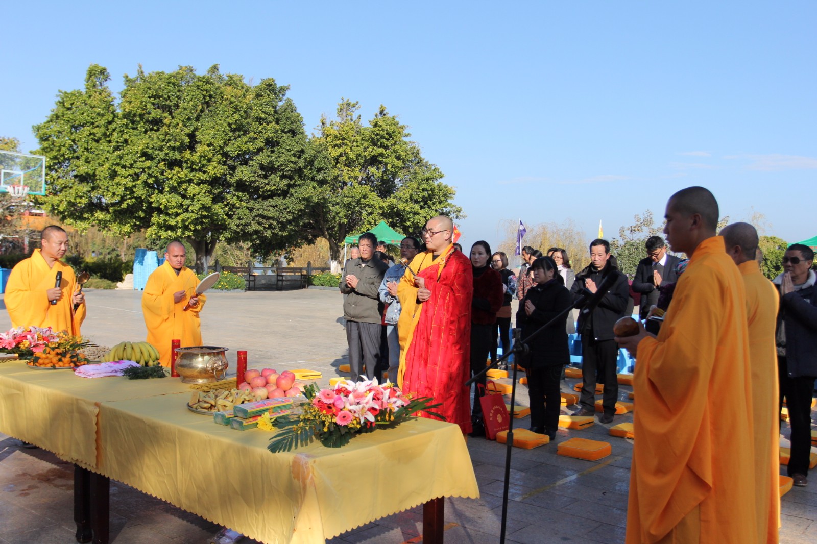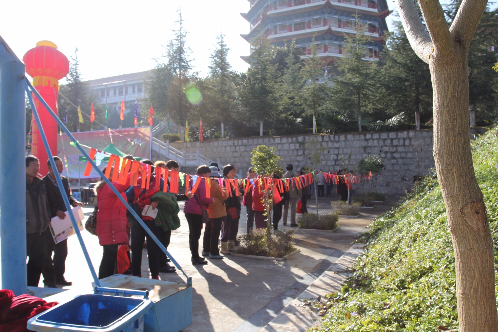 活動開始,各新老客戶由大巴車接送到達園區(qū),工作人員早已準備到位,鮮花的發(fā)放、祈福牌位的填寫、福滿人間的祈福法會,鮮花寄托對親人的思念,體現(xiàn)陵園低碳、綠色文明祭掃;祈福牌位,通過祈福感念的形式表達對已故親人的哀思;福滿人間的祈福法會,邀請昆明最古老的佛教寺院有1200多年建寺歷史的圓通寺主持及弟子再聚祥和陵園,舉行大型祈福法會,大師們念經(jīng)祈福、消災(zāi)解難,為逝者超渡,為生者祈福,行法事,祭先祖,表孝心,祈安康,主法禮佛,消災(zāi)祈福,看著廣大客戶滿臉的虔誠,體現(xiàn)了祥和陵園關(guān)心生者、關(guān)愛逝者、關(guān)懷人生的服務(wù)理念。開展五彩紙鶴寄故人,濃情冬至送溫馨大型冬至民俗文化活動,千紙鶴,千紙鶴,代表著對親人的祝愿。五彩千紙鶴,思語寄故人。園中飛舞的千紙鶴全部由祥和園員工和客戶親手折疊而成,寫上寄語,為親人們折疊千紙鶴,承載自己的一份祝福,傳遞著大家對親人的深深祝福。此次活動祥和園邀請舞蹈團至園區(qū)進行舞蹈演出,精彩的節(jié)目表演,讓參觀的客戶流連忘返,出彩的表演層出不窮,讓觀眾在視覺和聽覺上都得到了充分的享受,觀眾們的掌聲如雷鳴般,叫好聲一浪高過一浪,熱烈的氣氛始終貫穿于整個祭祀廣場。開展知識競答、定點投籃、猜謎語等小游戲,優(yōu)勝者贈送小禮品一份,廣大客戶積極踴躍參與。
