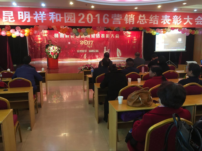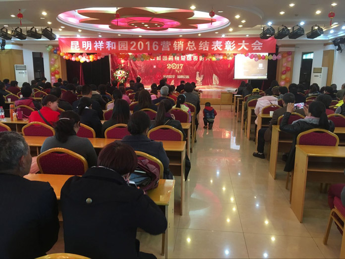 2017年1月18日,在春節來臨之際,祥和陵園在呈貢百花園酒店舉辦了2016年總結表彰大會,板塊領導出席了此次會議,公司全體員、業務代理團隊代表以及祥安全體工作人員參加了祥和陵園2016年度總結表彰會。