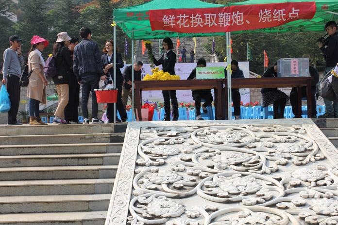 此次活動的舉辦是為了響應政府的號召倡導文明低碳祭掃、綠色生態殯葬、平安和諧清明的新風尚,盡企業的一份社會責任,努力實現“環境提升,服務升級,文明祭祀、平安清明”,同時也為了廣大客戶祭掃提供一個良好優美的祭掃環境和氛圍,舉辦“你在思念誰“清明節系列活動,通過此次活動的舉辦,能夠與客戶進行相互的交流、溝通,讓客戶感受到祥和園這個大家庭的溫馨。鮮花換燒紙、思念墻、黃絲帶、祈福卡是今年清明的一大特色和亮點,鮮花寄托對親人的思念,體現祥和陵園低碳、綠色祭掃的文明祭掃方式;思念墻,通過思念寄語、心愿清單的填寫,表達對已故親人的哀思;黃絲帶,絲絲牽掛、感恩祝福,掛上許愿樹表達對已故親人的緬懷、對過往的感恩及對未來的展望;祈福卡,代表著對親人的祝愿,每只卡片承載一份祝福,最終成為一個愿望。鮮花祭故人,祝福寄哀思,寫上寄語,為親人們系上祝福,傳遞著大家對親人的深深祝福。同時也體現了祥和陵園關心生者、關愛逝者、關懷人生的服務理念。祥和園在主干道及山頂、主塔旁新建了焚燒爐和衛生間,同時提供多個茶水飲用點,清明祭掃期間,引導客戶到園內指定地點焚燒紙錢、燃放鞭炮,倡導文明祭祀、鮮花祭祀,讓我們祥和園的山更綠、空氣更清新,同時讓我們這個滇池度假區的大環境爭光添色。