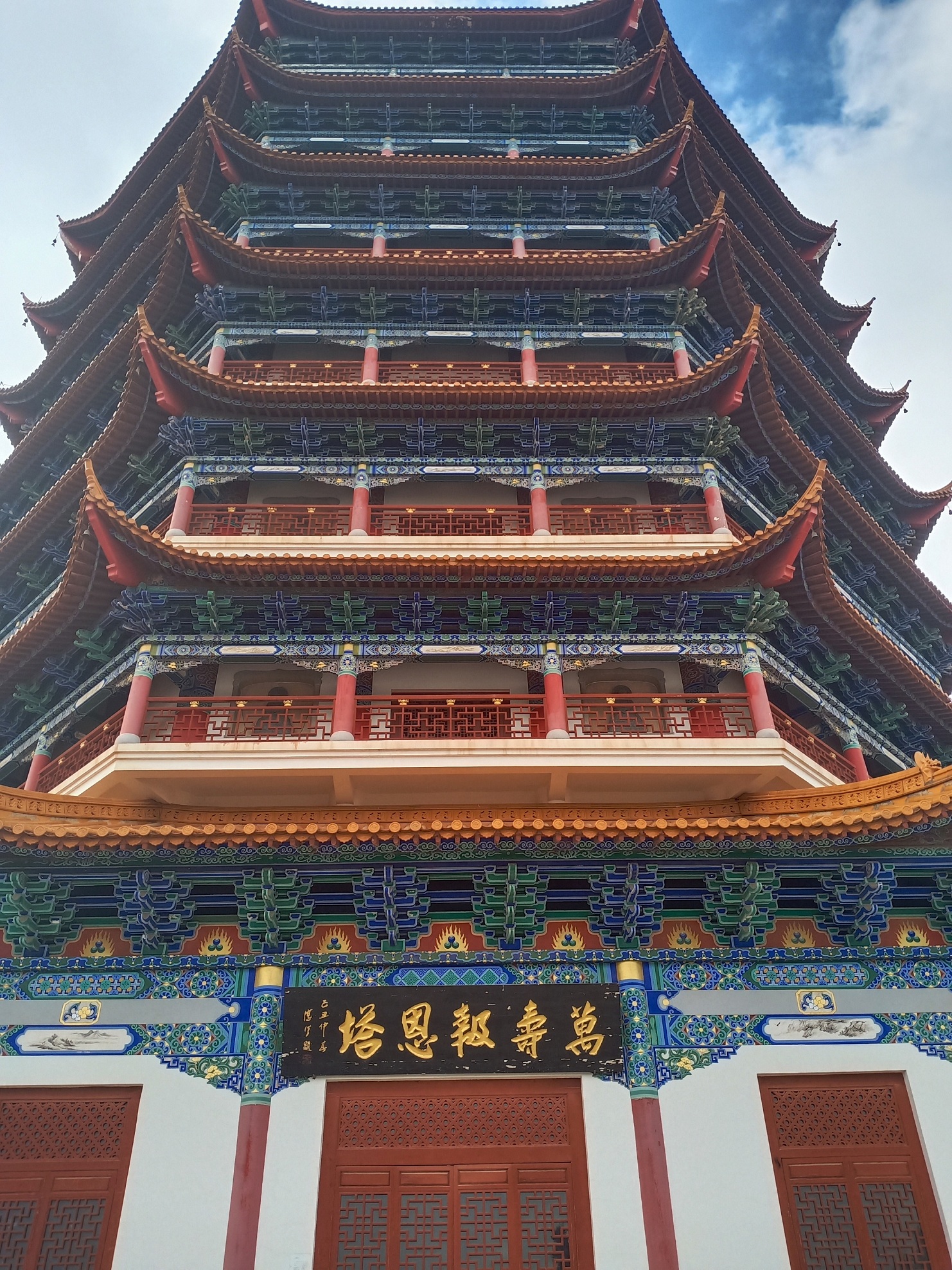 萬壽報恩塔也叫“浮屠塔”、“主塔”,共9層,規劃用于塔葬的位置是7層,由省佛教協會會長、圓通寺淳法方丈選址命名,并親手題寫經匾。浮屠塔是亞洲最大規模的塔陵,也是園區面積最大的大型仿古建筑的納骨塔,八角攢尖,黃瓦紅墻,建筑風格承襲了古代天圓地方的觀念。進入浮屠塔佛事大廳,映入眼簾的是9米高、9米寬的巨型佛家壁像,16棵金碧輝煌的九龍柱,龍柱上方雕有24孝大型組圖,是宗教藝術、建筑美學與文化精神的紛彩呈現。塔里供奉的西方三圣和地藏王菩薩佛像慈祥而莊重、威嚴而親切,充分體現了我佛普度眾生的大慈大悲,也是祥和園舉行大型法事,高僧作法祈福的地方。